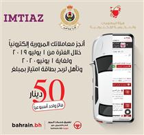أعلنت الإدارة العامة للمرور ، تخصيص جائزة أسبوعية قيمتها 50 دينارا ، بدءاً من يوليو المقبل ولمدة عام ، بدعم من شركة تسهيلات البحرين "امتياز " ، وذلك لمستخدمي الخدمات المرورية الإلكترونية...