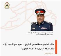 أكد العميد الشيخ عبدالرحمن بن عبدالوهاب آل خليفة مدير عام الإدارة العامة للمرور نجاح الخطة المرورية التي نفذتها الإدارة خلال استضافة مملكة البحرين للقمة العربية في دورتها الثالثة والثلاثين التي ان...