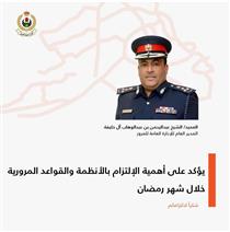 دعا العميد الشيخ عبدالرحمن بن عبدالوهاب آل خليفة مدير عام الإدارة العامة للمرور بمناسبة حلول شهر رمضان المبارك، الى أهمية الالتزام بالأنظمة والقواعد المرورية وذلك حفاظا على سلامة الجميع .
