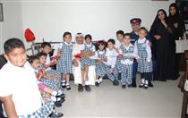 طلاب روضة جزيرة الأطفال يوزعون الورود على موظفي المرور بمناسبة أسبوع المرور الخليجي