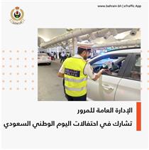 الإدارة العامة للمرور تشارك في احتفالات اليوم الوطني السعودي ال93 بحملة توعوية للمسافرين القادمين عبر جسر الملك فهد.