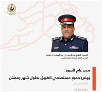 هنأ العميد الشيخ عبدالرحمن بن عبدالوهاب آل خليفة مدير عام للإدارة العامة للمرور المواطنين والمقيمين بمناسبة حلول شهر رمضان المبارك.